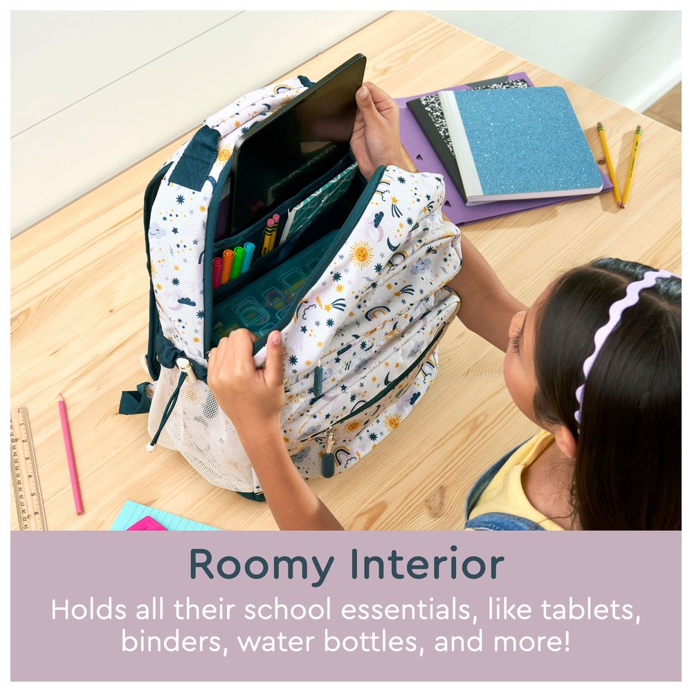 Send your kids to school in style with this lightweight and durable Bentgo Kids Backpack in a ton of cute prints, confetti designs, and sparkling glitter accents. Made with non-toxic, water-resistant fabric that's easy to clean, this comfortable backpack holds all their school essentials, like tablets, binders, water bottles, and more! It fits everything needed for school, your toddler's daycare, and even airplane trips with its roomy interior featuring a padded laptop sleeve, 2 water bottle pockets, and 2 zip compartments. The padded back and shoulder straps, buckled chest strap, kid-friendly zippers, and to-go top handle make carrying, holding, and opening the backpack easy enough for a child, and convenient enough for a parent! Plus, the added lunch bag loop at the top means you can easily attach your own lunch bag when needed (Bentgo Kids Lunch Bag sold separately). Perfect for ages 4+, pick your favorite print and build your Bentgo set today! Lightweight & Durable: Comfortable and supportive, this travel backpack for kids features a padded back, padded adjustable straps, and an optional chest strap Safe Materials: High-quality, non-toxic nylon EVA polyester keeps up with the most active kid Waterproof & Easy to Clean: Simply use a damp cloth to wipe away dirt from your kids school backpack